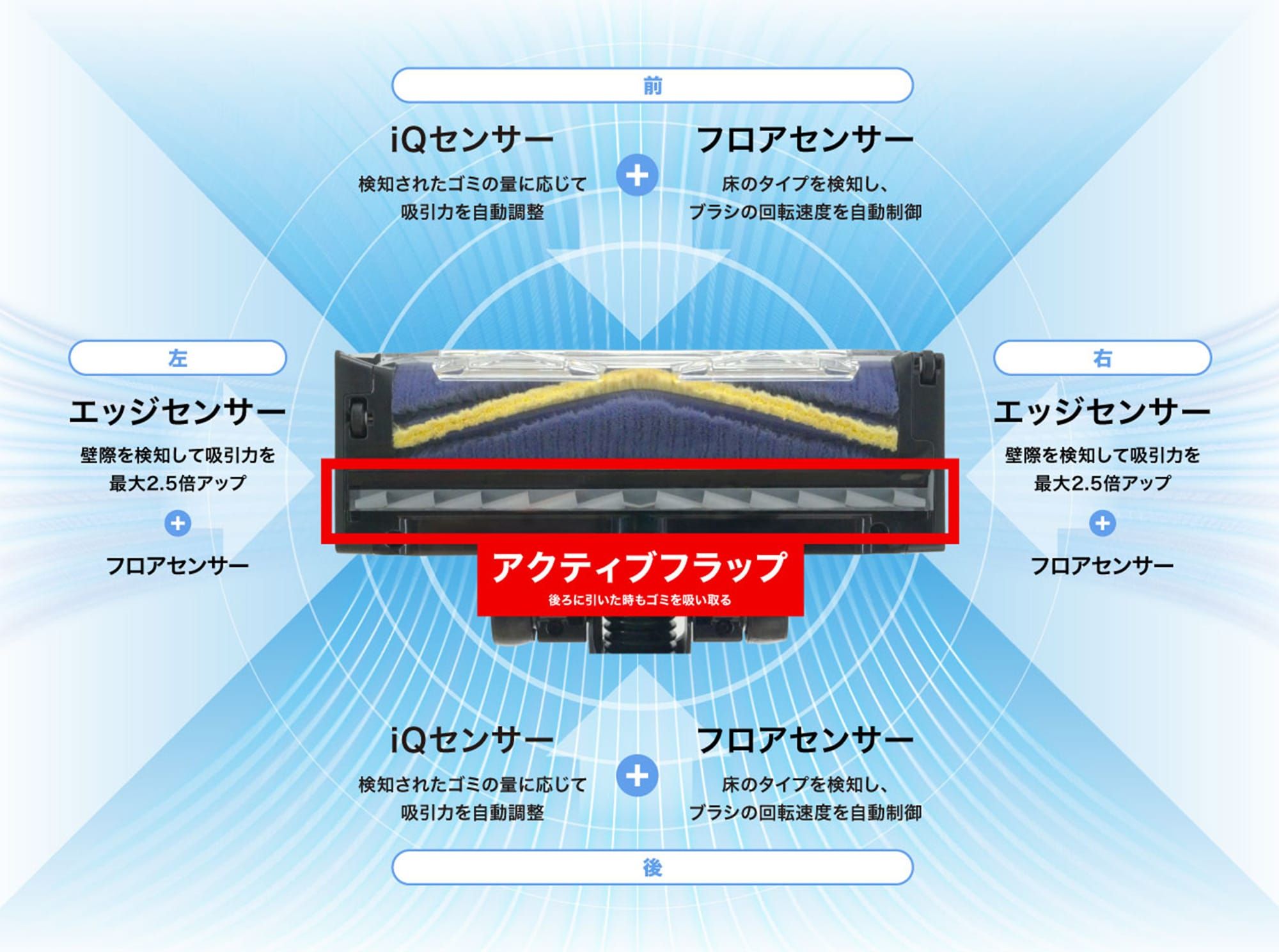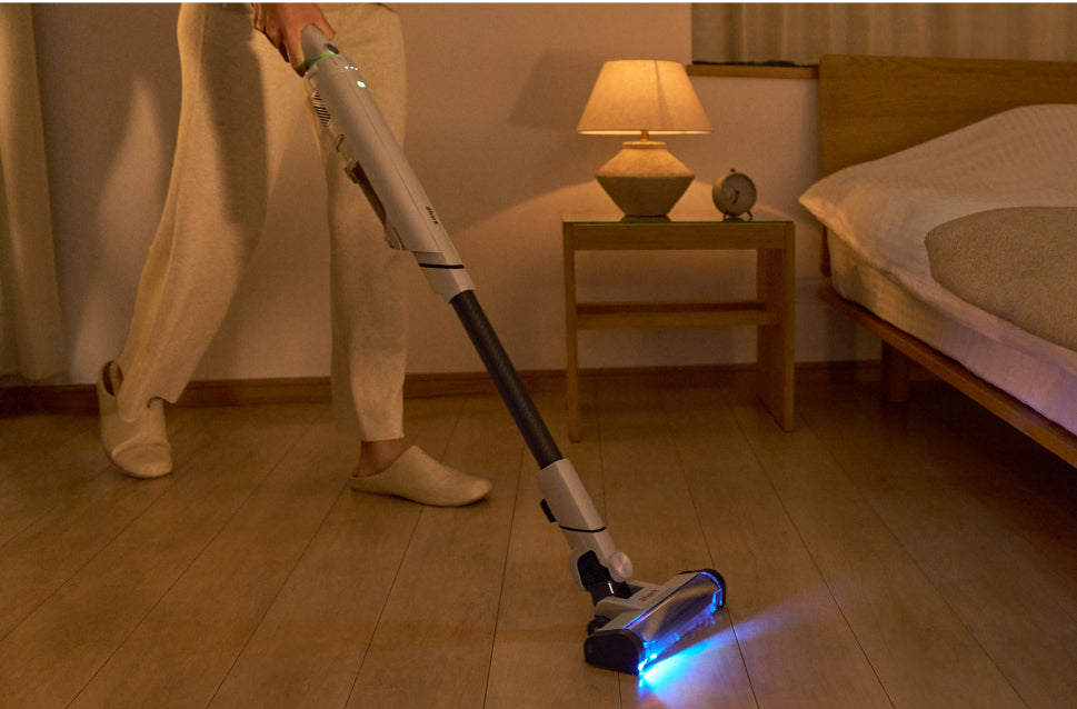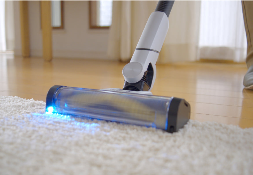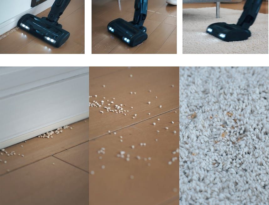 強力な布団クリーナーとして活躍。モーターが表面に密着し、高速回転するフィンがゴミをかき出し髪の毛まで取り除きます。