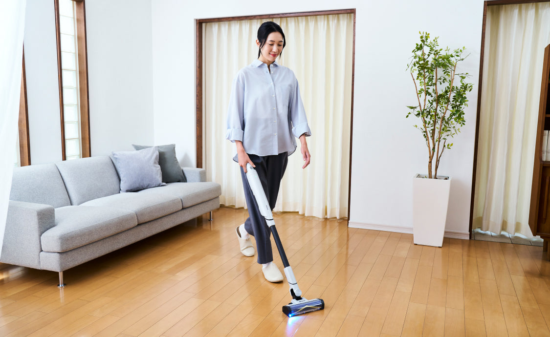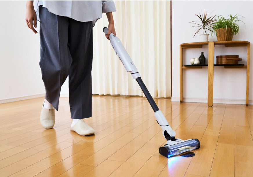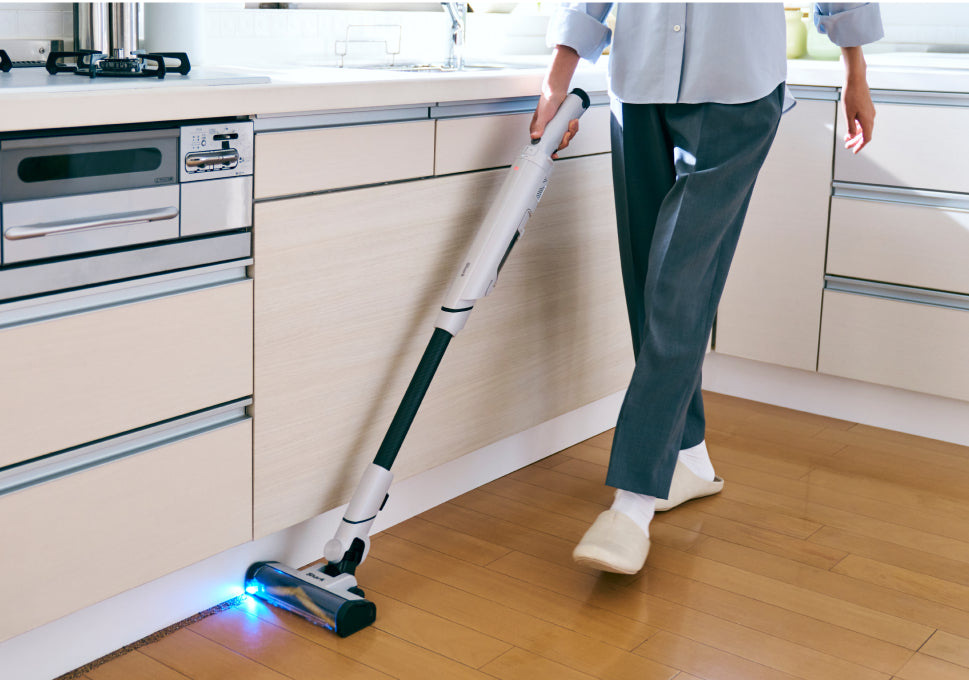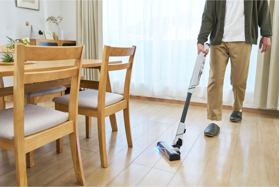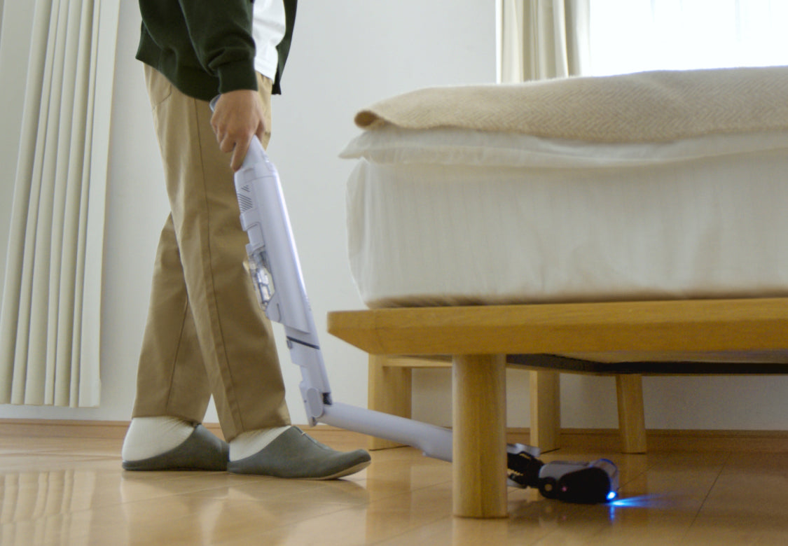 家具下の狭い場所もパイプが曲がり、立ったままの姿勢で掃除できるからラクラク