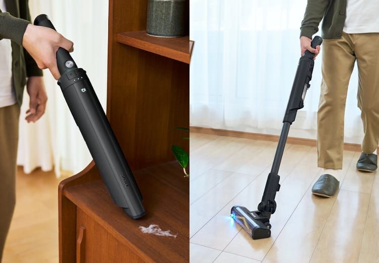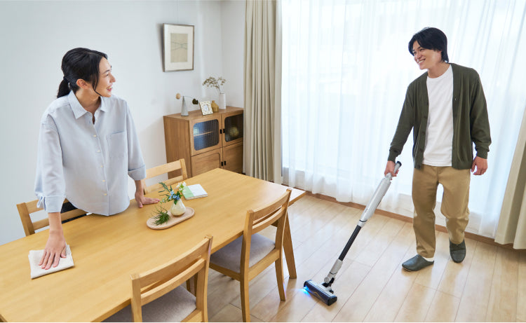 ダブルバッテリーにより、バッテリーが切れてもすぐに交換。家の隅々までお掃除できます。
