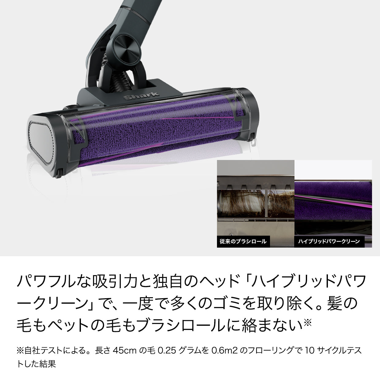 *1 自社テストによる。長さ45cmの毛0.25グラムを0.6m2のフローリングで10サイクルテストした結果