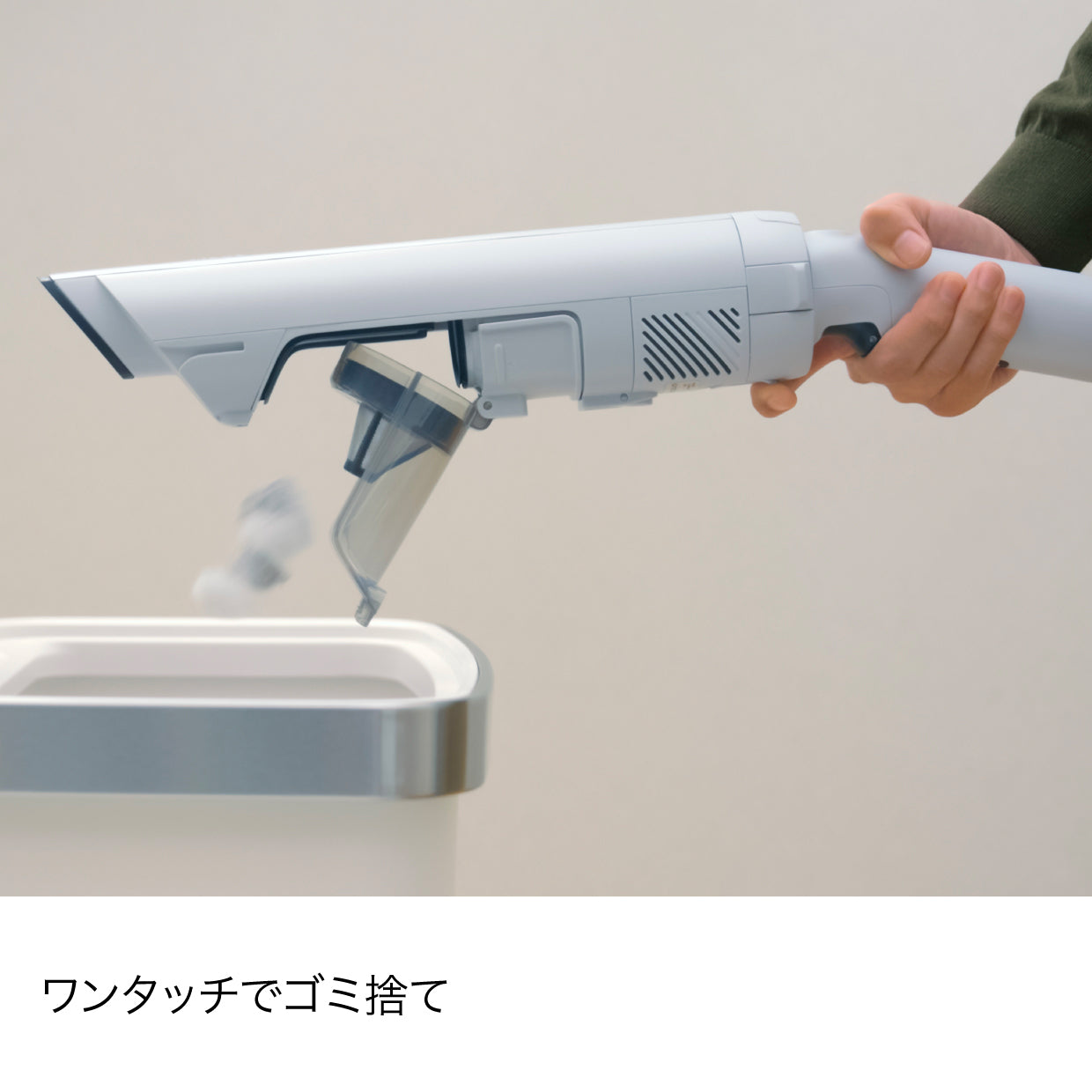 手元のボタンを引くだけでダストカップが開き、手を汚さずに、ゴミ箱に捨てることができます。