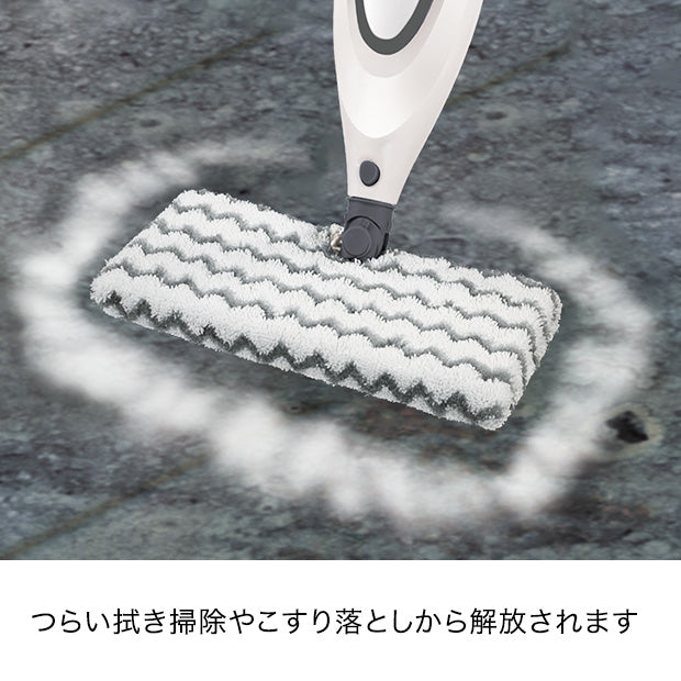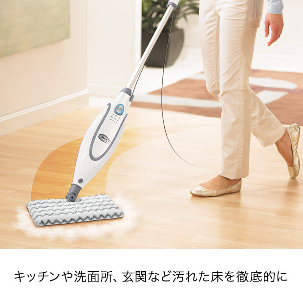 *除菌試験はIntertekLaboratories,Inc. により実施され、微生物試験用の黄色ブドウ球菌を特定量含有する試験溶液を用いた試験タイルを使用。クリーニング前に3分間モップの準備運転を行いました。試験タイル上で15回スチーム加熱とモッピングを行ったところ、試験タイル上で99.9%を超える試験生物の減少が認められました。