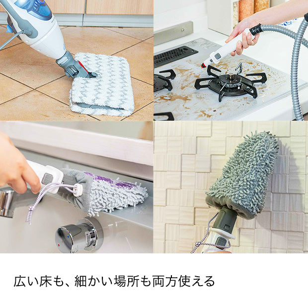 100℃を超える高温ドライスチームで、 掃除機で取れない汚れもラクラクお掃除 水だけで洗浄だから安全 スチームパワーで99.9%除菌*