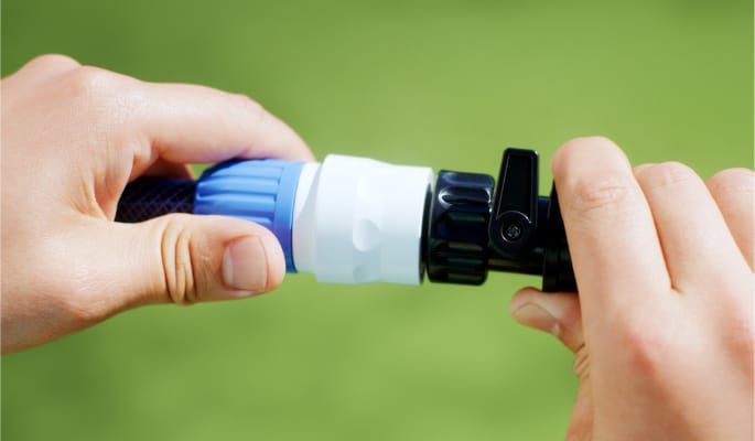 付属のミストアタッチメントを取り付けて水道につなげば、屋外でさわやかなミストシャワーを楽しめます。