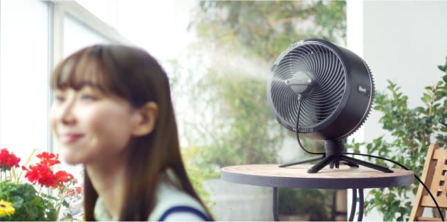 ミストの気化熱効果で最大5度温度が下がり、暑い夏を涼しく快適に過ごすことができます。細かな粒子のミストでリフレッシュでき、外の猛暑対策にも最適です。